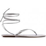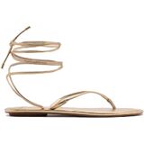 Women's Gold Lace-Up Flat Sandals Strappy Round Thong Toe Gladiator Tie Up Dress Flip Flop Summer Shoes