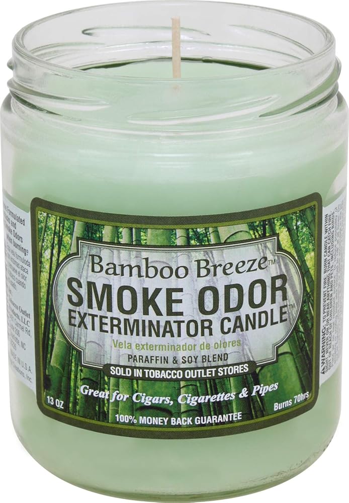 Smoke Odor Exterminator 13 oz Jar Candles Bamboo Breeze, (3) Set of Three Candles.