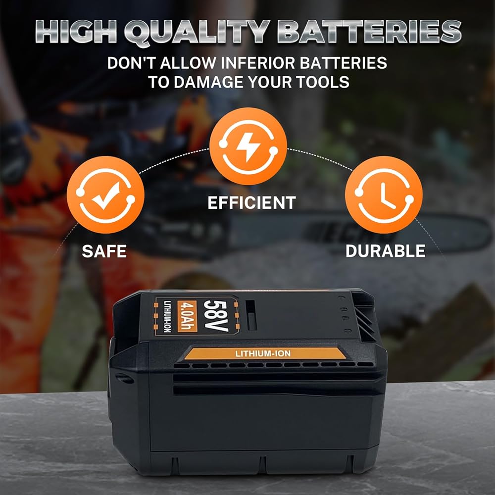 ③. Used to a powerful Top-A grade battery, unlock 4X longer runtime & stronger output! this powerhouse matches the original Echo 58V power battery in every way. Experience uninterrupted workflow with sustained high performance – eliminate frustrating frequent battery swaps.