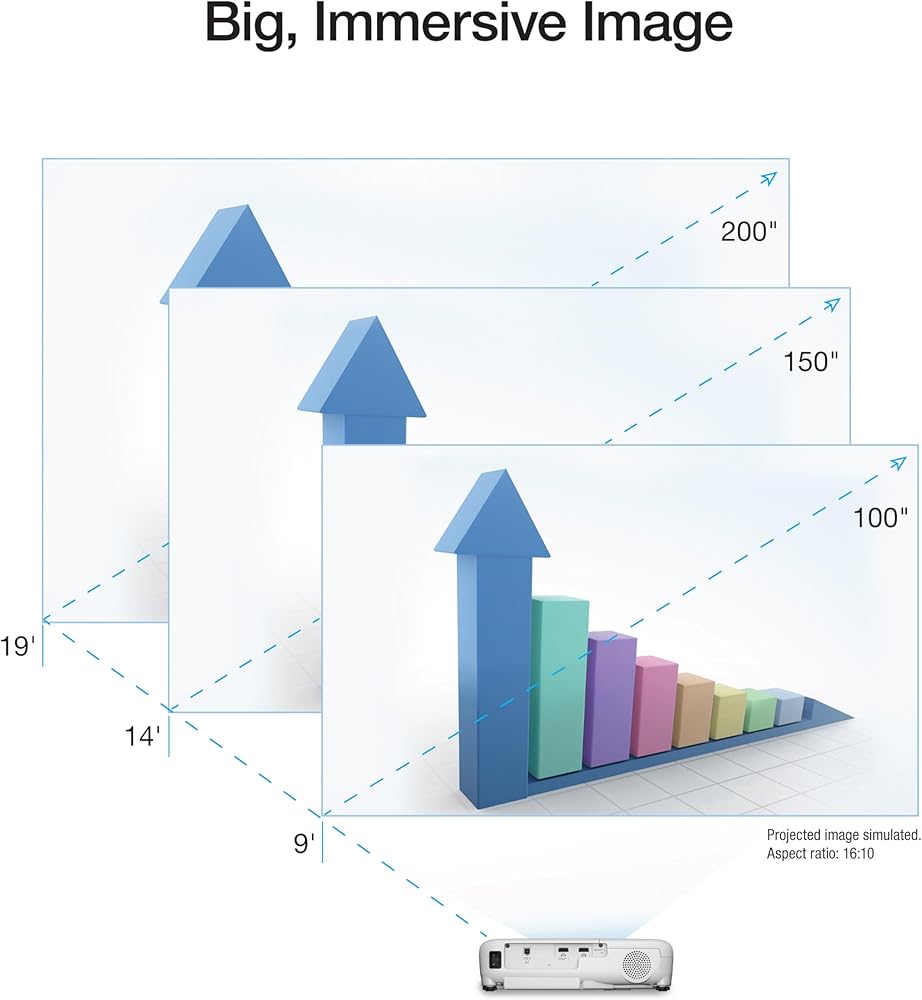 Impress your audience and own the room with the ultra bright EX3290 projector. See and be seen with images up to 300''—4x the size of a 75'' flat panel—perfect for maximizing productivity. Offering 4,000 lumens of color brightness (IDMS rated) and 4,000 lumens of white brightness (ISO rated)¹, the EX3290 delivers vivid, professional-quality presentations, spreadsheets and videos—even in well-lit spaces. This sleek, compact projector makes it easy to display captivating images using advanced 3-chip 3LCD technology, stunning widescreen WXGA resolution and real-time, scene-by-scene adaptive correction technology for vibrant color and sharp contrast, every time you display. Ideal for creating dynamic, engaging presentations, the EX3290 conveniently connects to streaming devices², such as Amazon Fire, Apple TV, Roku, and Chromecast. In addition, easily connect laptops so you can video conference and share a variety of rich content, including movies, TV shows and more². And with a built-in speaker, you can enjoy hassle-free setup for video and audio—right out of the box.