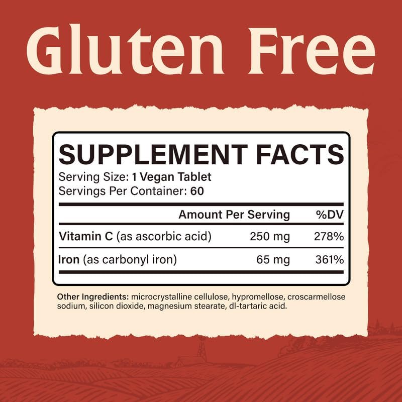 Gentle Iron with VC: Our carbonyl iron provides gradual and gentler iron absorption than other forms so you can enjoy it without stomach upset or constipation.* This GI-friendly iron is formulated with 250 mg of vitamin C to further promote iron absorption, while also boosting immunity and providing antioxidant benefits.*