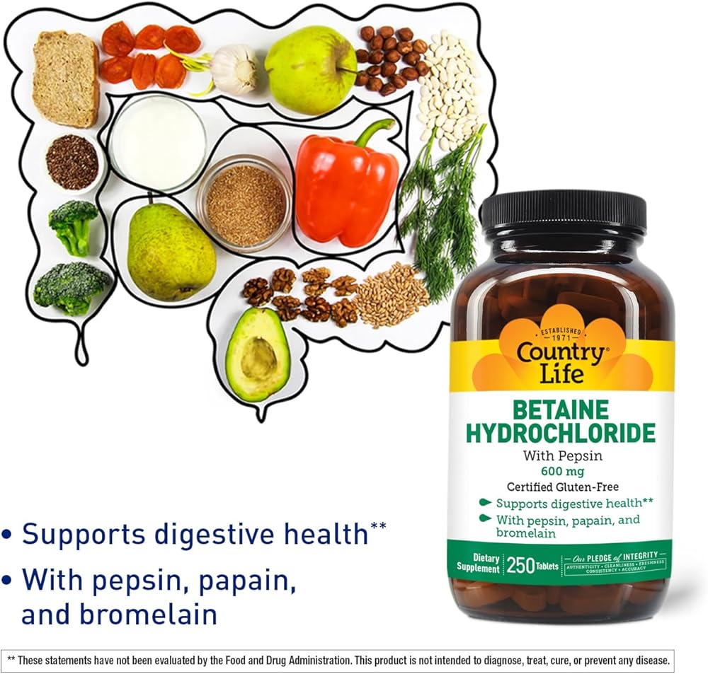 - Betaine hydrochloride – Helps support digestion in the stomach by providing a source of hydrochloric acid