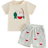 Feature: Baby boy summer outfit. Short sleeve tshirts, animal embroidery, round neck. Toddler boy shorts, striped print, elastic waist, loose fit design ensures comfort, baby boy smocked outfit, super trendy