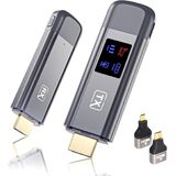 【LED Signal Display & Using Tips】 There is a digital display on the wireless HDMI transmitter to show signal strength. You can know the connection status in real time. (If the connection is not stable, the most likely reason is lack of voltage. You can use type-c cables and chargers above 5V/2A to charge the transmitter & receiver.) Packing List: Wireless HDMI Transmitter *1, Wireless receiver*1, user manual, quick guide, HDMI converters *2, type-c charging cables*2, HDMI extended cable.