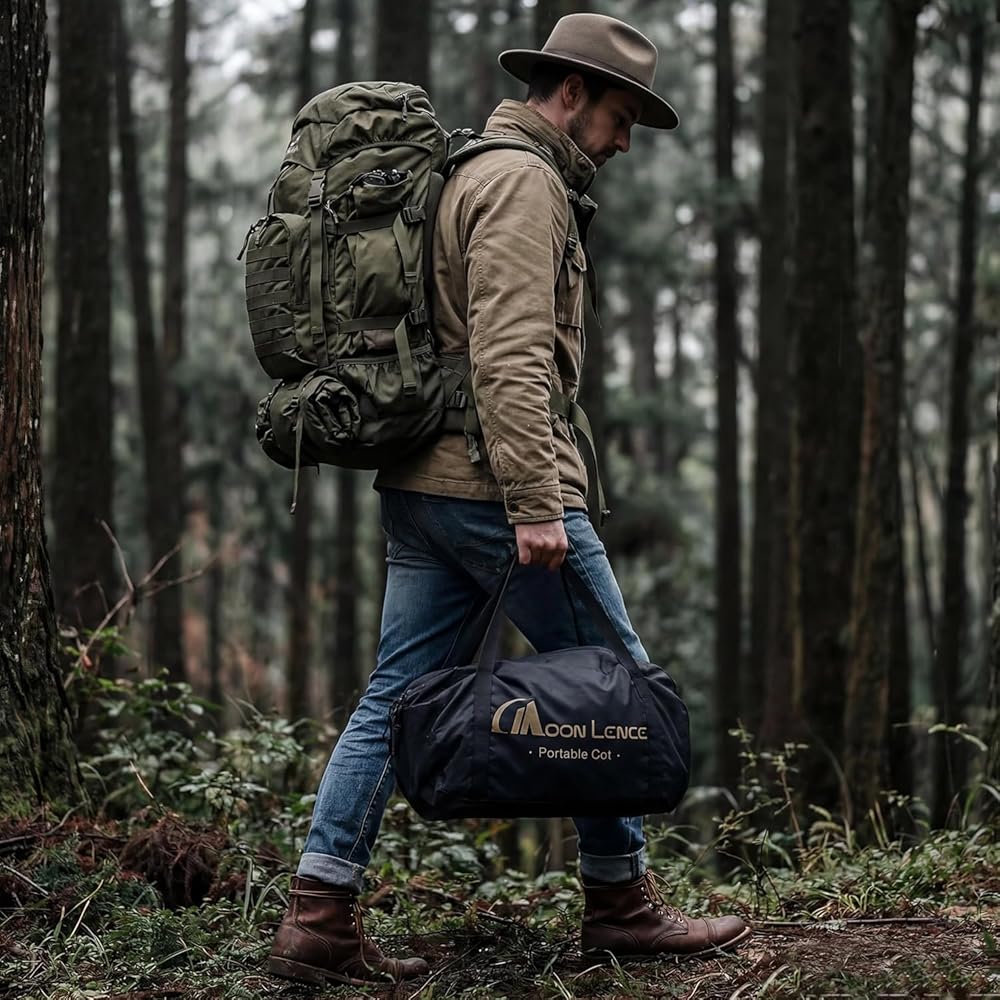 【Portable Cot】:Thanks to its small storage volume,this compact camping cot weighs only 9.19 pounds and comes with a well-made storage bag, you can take it wherever you want without feeling burdened.