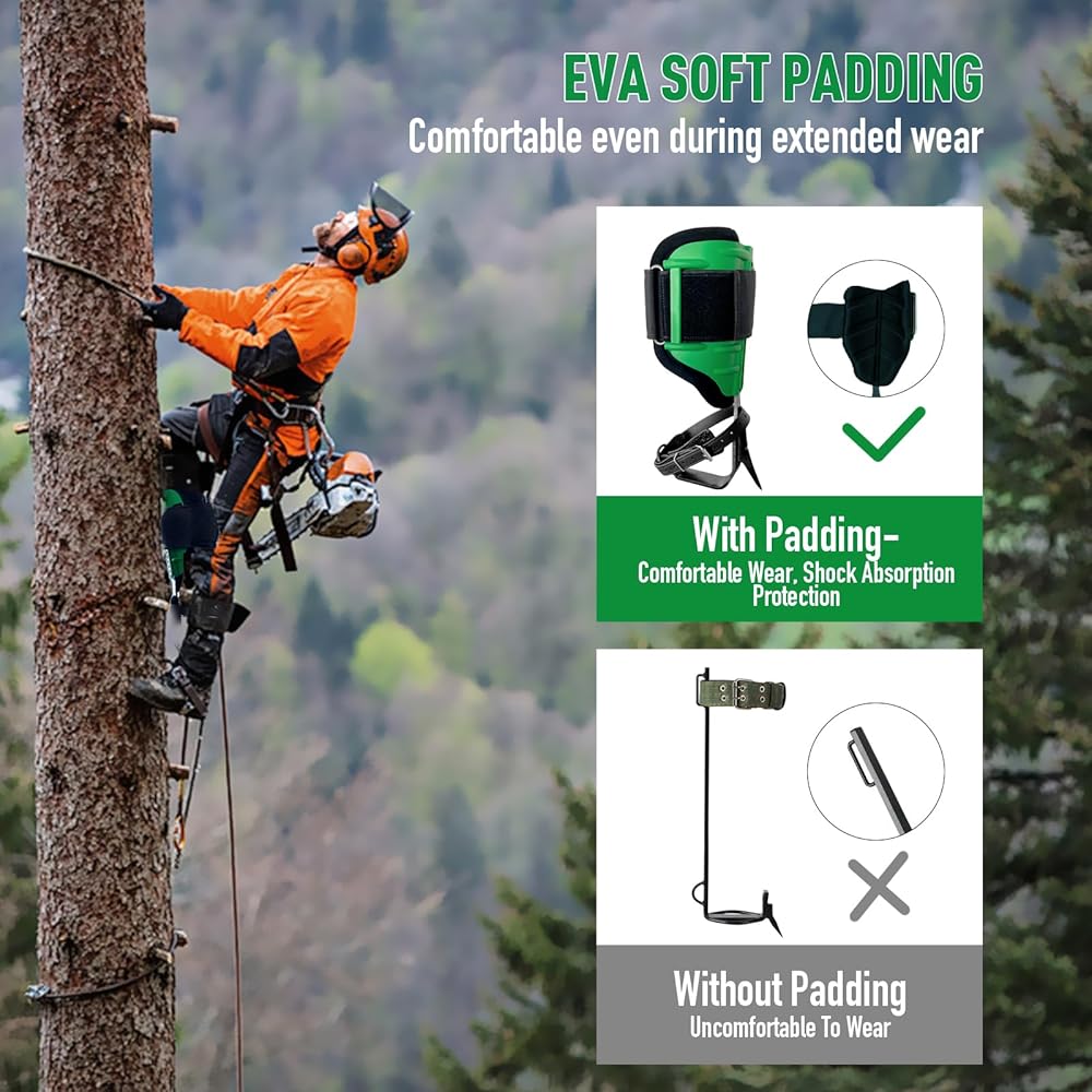 Comfortable Wear: Featuring soft EVA padding, these climbing spurs provide exceptional shock absorption and extra leg support for comfortable climbing. The design ensures comfort even during extended use, reducing fatigue and impact while enhancing safety and ease of use.