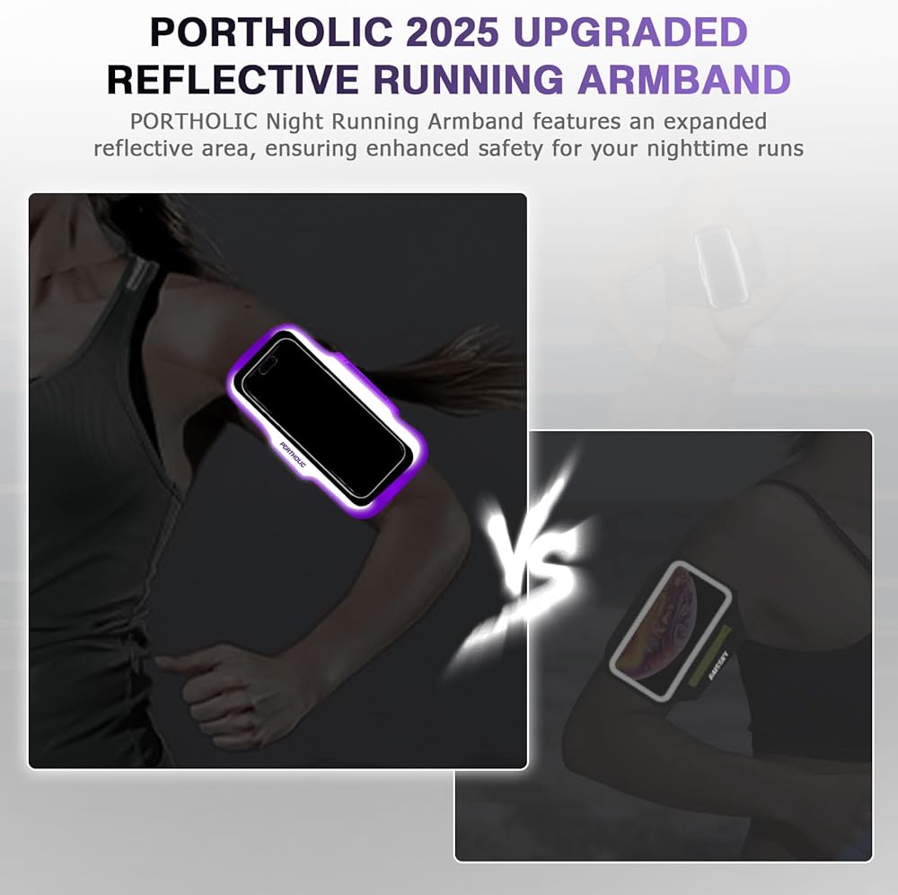 【PORTHOLIC 2025 Reflective Running Armband 】100% wider reflective strips ensure night safety, while a pocket securely holds cards/cash. Ultra-light 50g design feels weightless, letting you run freely. Upgrade your runs now!
