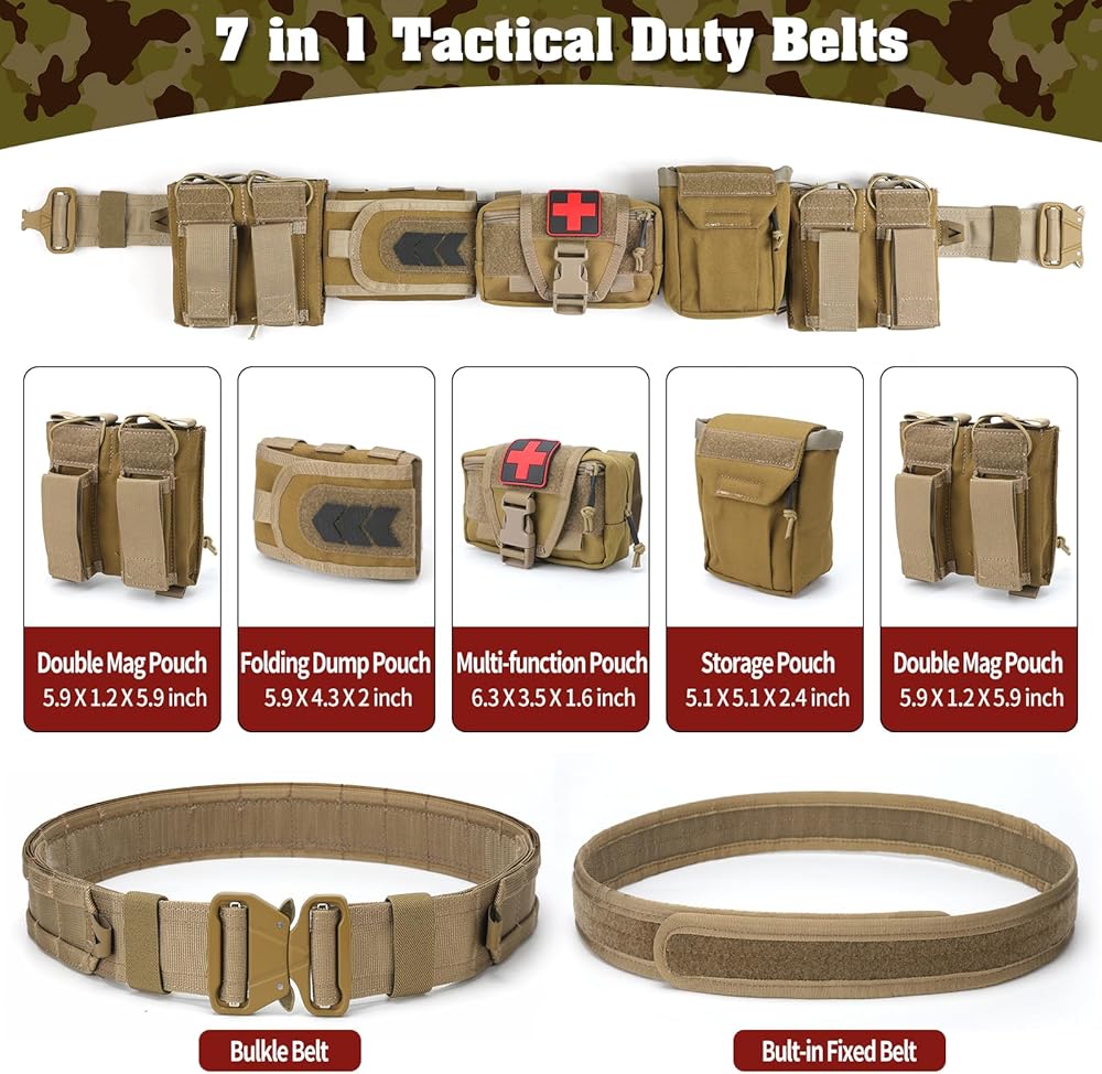 TWS 7 in 1 Quick Release Tactical Duty Belt provides a strong, stable platform for your Multifunctional use. Modular versatile design for police, security officers, and law enforcement. This multifunctional belt can also be used as a practical belt, combat belt, battle belt, police weapon belt, and tactical equipment. Made from 1000D nylon, it has good tear resistance. Different and multifunctional pockets can be removed so you can choose what you need. It can also be used as a normal everyday belt (fitting on its pants) when you remove all of the bags.