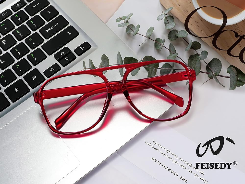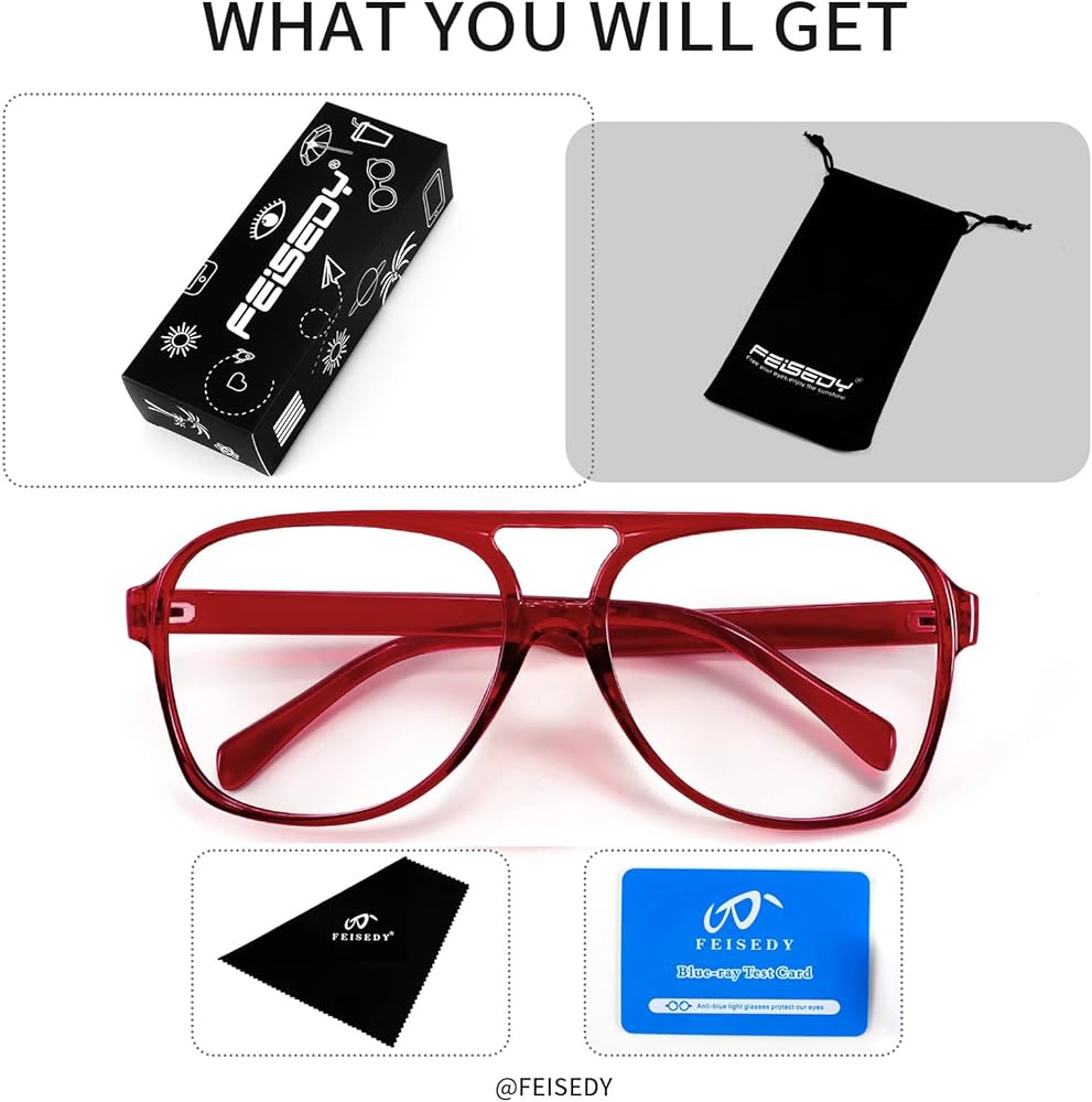 FEISEDY 70s Oversized Aviator Glasses Frame - These glasses frameare not only stylish but also light, not heavy. It subverts the traditional nerd plastic frame design. The new style clear glasses will put you in the spotlight all the time!