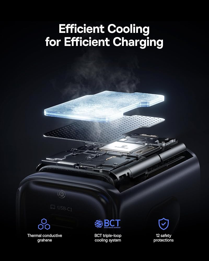 TÜV Rheinland Certified Safe Charging: Using the same Nawei power chip used by big brands, the conversion efficiency of this fast charger is as high as 92%, reducing energy loss and making charging more stable. It features multiple heat dissipation systems for efficient cooling and charging. And graphene inside this fast charger can help dissipate heat.It also features overcurrent, overvoltage, and short-circuit protections for your peace of mind.