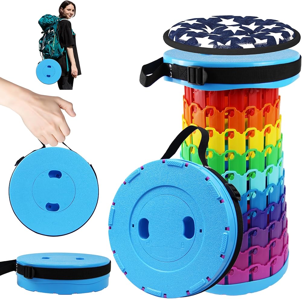 【Safaty and Sturdy】 Made of high-strength heavy duty environmental material plastic PP, the cylinder shape structure, tight connecting clasps, and the non-slip base ensure that this collapsable stool will give the stability to provide safe and comfortable sitting. The maximum load capacity is as much as 440 lbs(200kg) ATTENTION: Please sit in the center of the seat. DO NOT sit on the edge of the seat. DO NOT tilt the stool.not sweep down!
