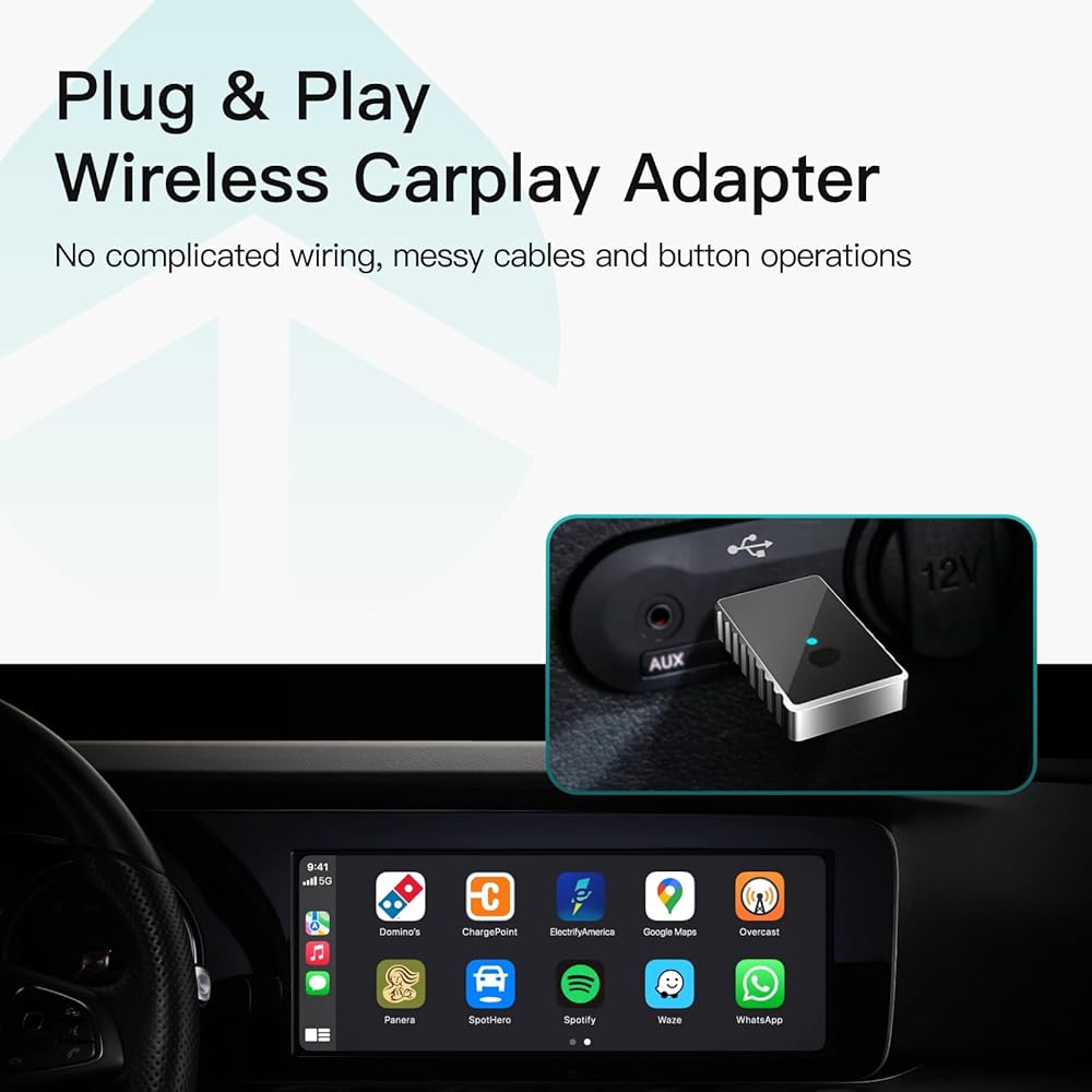 PLUG & PLAY, WIRELESS CARPLAY ADAPTER:No complicated wiring needed, automatically connects to your phone upon insertion. Say goodbye to messy cables and button operations. Enjoy wireless convenience without car modifications