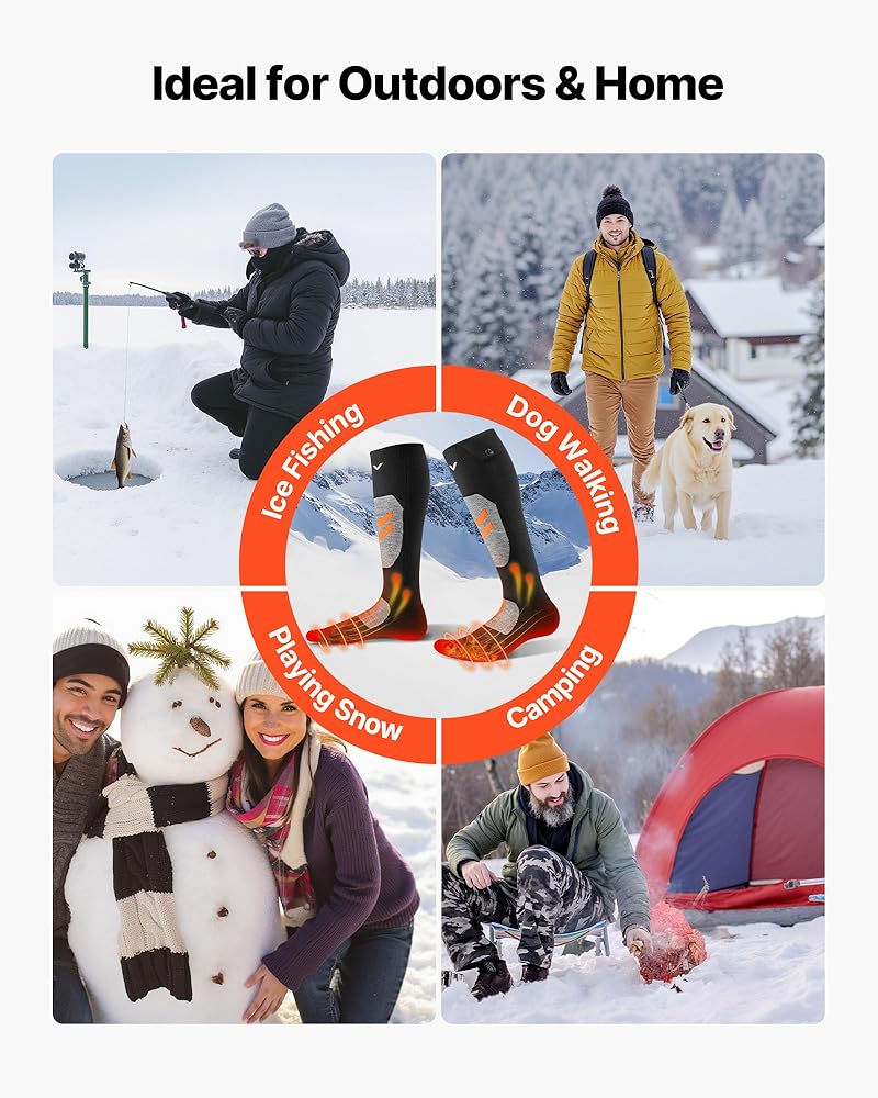 • Versatile for All Scenarios: These heating socks are ideal for any outdoor adventure—skiing, hiking, ice fishing, or even walking your dog. Suitable for all ages, keeping you warm and cozy in all conditions
