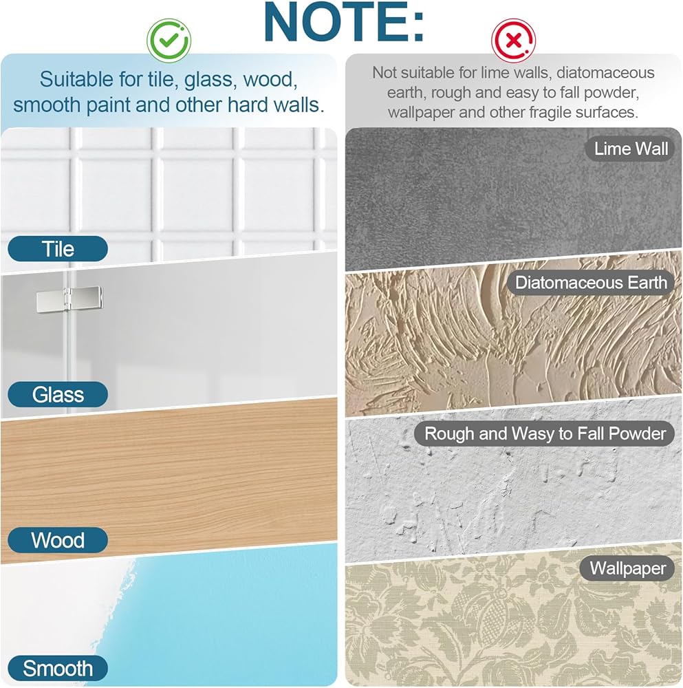 NOTE: Apply only to hard walls such as smooth wood, tile, glass, and smooth painted surfaces. Not applicable not applicable to lime wall, diatomaceous earth, wallpaper and other fragile and easy to fall powder wall surface.