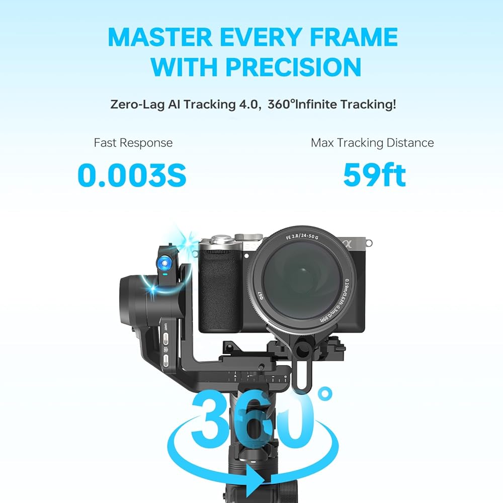 [AI Tracking 4.0] Unlock pro-level creativity with the FeiyuTech SCORP Mini 3 Pro 3-axis gimbal stabilizer——Enjoy 0.003s response time, 360° infinite pan, up to 39ft range, and a 15% wider tracking view—powered by our enhanced AI algorithm. With the smarter built-in module, you'll never miss a moment.