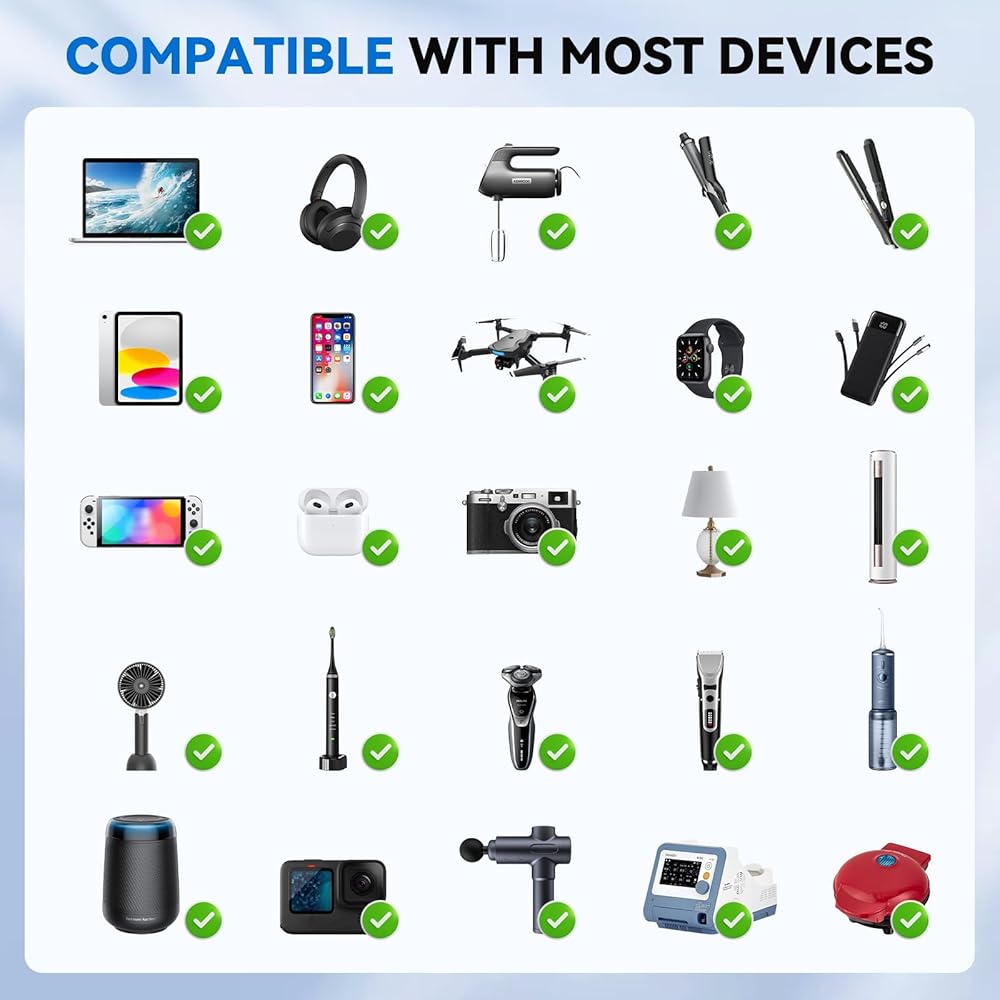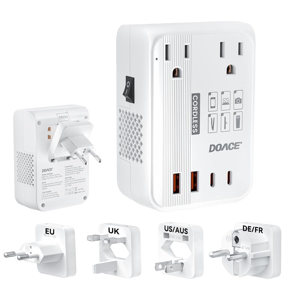 Portable & Universal: Comes with 4 international travel adapters (EU/AU/US/UK), allowing you to power your devices in over 200 countries. Its compact size (2.8×4.1×1.5 in) and lightweight design (only 7.8oz) make it easy to slip into any bag and make your trip more convenient!