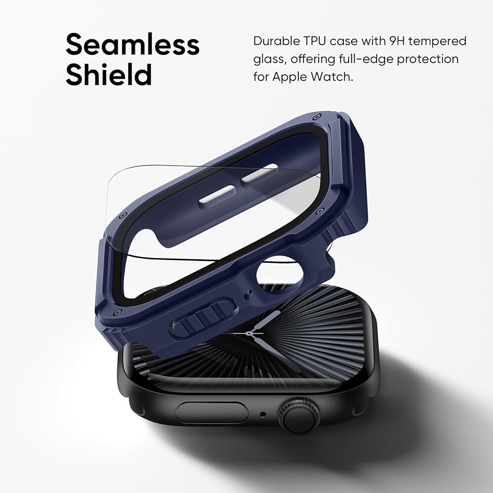 Scratch & Shock Protection: Crafted from premium, durable TPU material with an integrated 9H tempered glass layer, this iWatch screen protector delivers full coverage for Apple Watch screen and curved edges. It provides reliable protection against impacts, scratches.