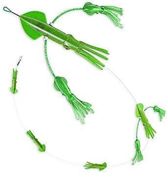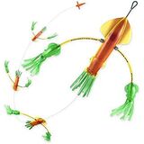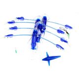 "That Flippy Floppy Thing" is a daisy chain depicting a critter scattering a bunch of bait in the air. It is made with 9 inch Squidnation Rubber Mauler Squids, 8 six inch Squidnation Fat Daddy Squids and 1 Squidnation 5 inch bird. Rigged on 275lb test tipped with a 300lb Marlin Coast Lock swivel. It has been a proven sailfish and marlin raising machine. Best to use when targeting Marlin, Sailfish, Tuna, Dolphin and Wahoo. Try one in your spread today. You will be convinced very quickly as to way it has succeeded so well.