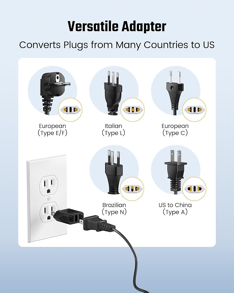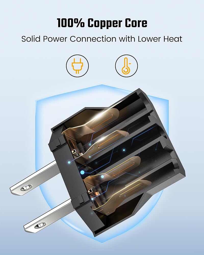 【Safe and Reliable】 Designed with safety in mind, our adapter features high-quality pure copper conductors along with a durable, fire-resistant polycarbonate (PC) shell. With voltage compatibility of 110~250V and a maximum power capacity of 660W, this adapter provides safe and reliable power transfer for your devices, with no worries about overheating or fire hazard