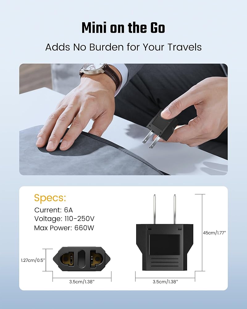 【Compact and Lightweight】 The ultra-compact size of the SUPERDANNY adapter (1.8 x 1.4 x 0.5 inches) and its lightweight design (weighing just 0.33 ounces) make it ideal for travel. Its portability ensures it fits easily into your pocket or bag, making it a perfect companion for both international travel and everyday use. Multiple adapters can be easily stacked together to save space and reduce clutter