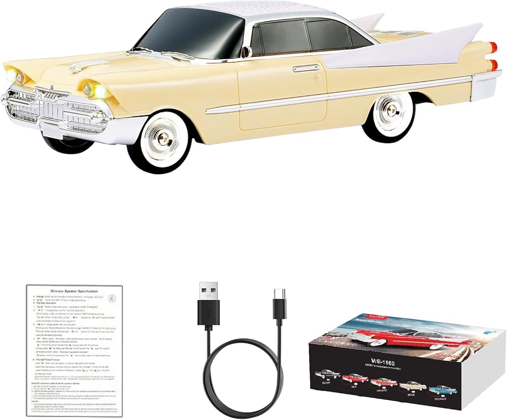 🔊 Powerful HD Sound in a Retro Package Get immersive audio with a stylish sports car-inspired speaker — a unique Bluetooth replica with HD sound in a compact design