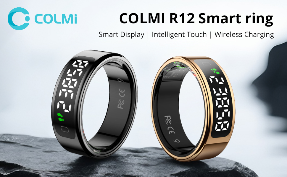 COLMI R12 Smart Ring for Women and Men, Touch and Display, Fitness Tracker, Heart Rate, Blood Oxygen, Sleep, Multiple Sports Modes, Suitable for iPhone and Android. (Black, #12)