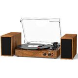 【3-SPEED BELT-DRIVEN TURNTABLE】The vinyl record player equipped with dust cover, slip-mat, 45 RPM-adapter, and built-in auto-stop function, 3- speed turntable supports all vinyl records including 7", 10"& 12" with switchable 33⅓ 45, 78 RPM speed settings. Protective auto-stop function enables to stop automatically when a record ends.