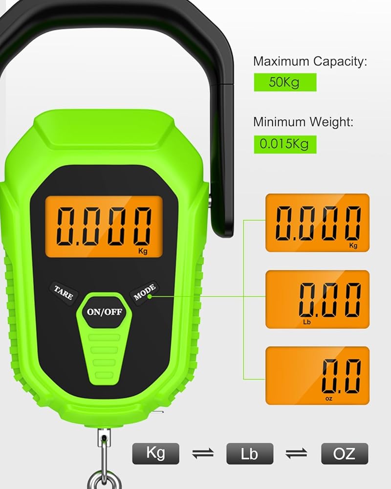 【𝐇𝐢𝐠𝐡-𝐏𝐫𝐞𝐜𝐢𝐬𝐢𝐨𝐧 𝐒𝐞𝐧𝐬𝐨𝐫 𝐟𝐨𝐫 𝐀𝐜𝐜𝐮𝐫𝐚𝐭𝐞 𝐖𝐞𝐢𝐠𝐡𝐢𝐧𝐠】Experience accuracy with our high-precision sensor, delivering instant weight readings (within 2 seconds) and locking them in place. With a wide measurement range of 15g to 50kg and three unit options (kg, lb, oz), this fish scale meets the needs of most users with minimal error