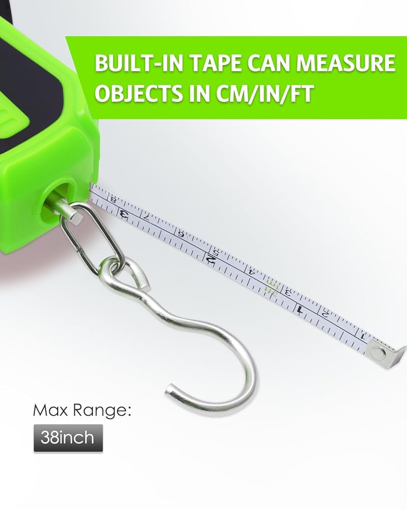 【𝐕𝐞𝐫𝐬𝐚𝐭𝐢𝐥𝐞 𝟑𝟖-𝐈𝐧𝐜𝐡 𝐑𝐞𝐭𝐫𝐚𝐜𝐭𝐚𝐛𝐥𝐞 𝐓𝐚𝐩𝐞 𝐌𝐞𝐚𝐬𝐮𝐫𝐞】More than just a fishing scale, this product comes with a 38-inch retractable tape measure, perfect for checking luggage sizes, measuring packages, or outdoor activities. Its multi-purpose design adds value beyond fishing, enhancing its utility across various scenarios