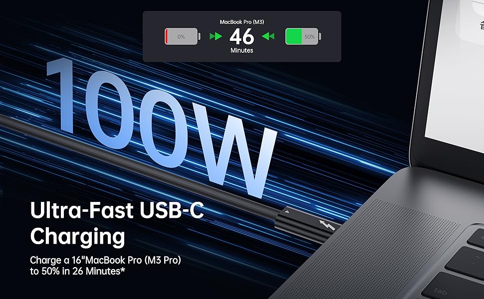 【Fast Charging】Supports Power Delivery for up to 100W high-speed charging when paired with a USB-C charger.