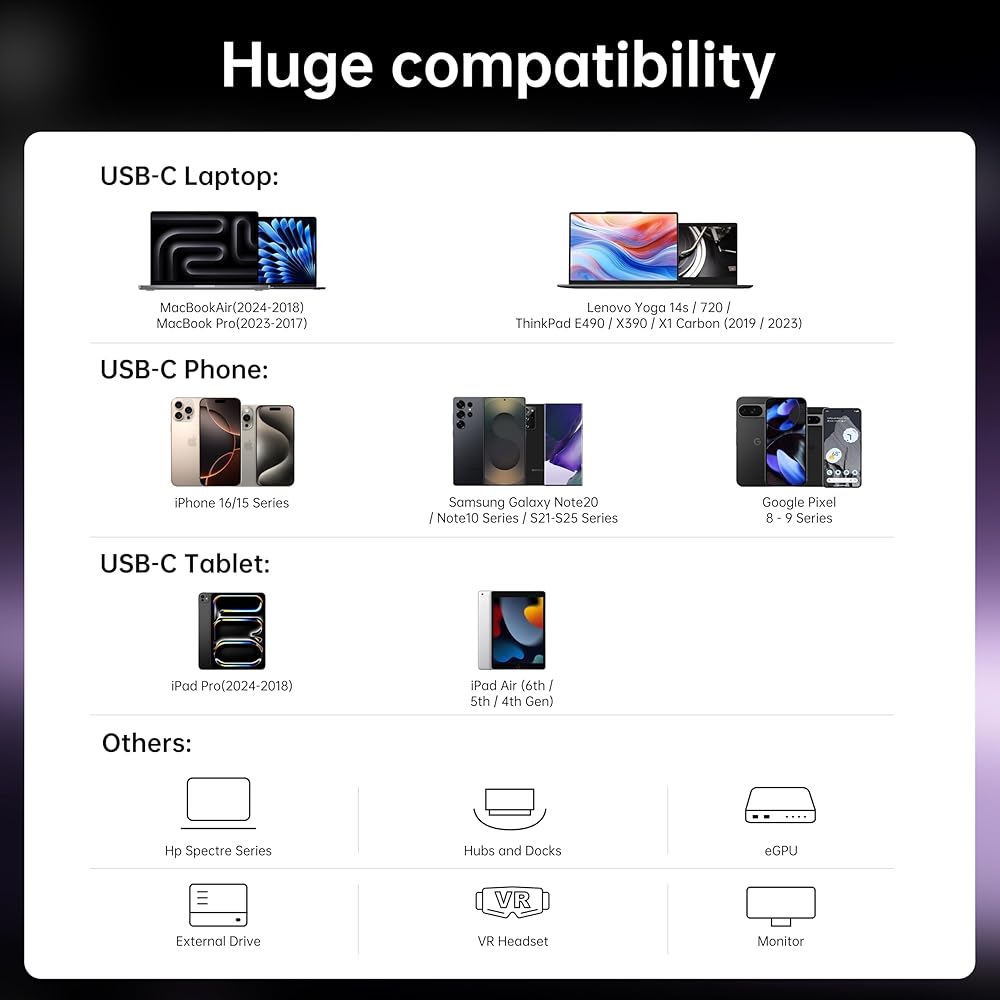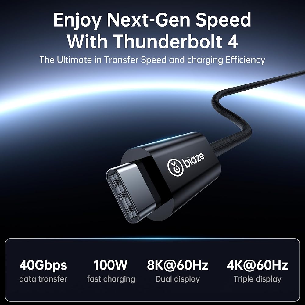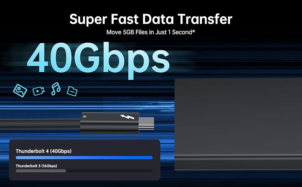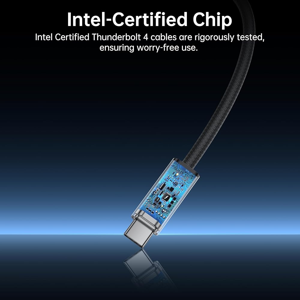 【Versatile Compatibility】Thunderbolt 4 Cable fully supports all the awesome features of Thunderbolt 4 and USB4, while also being fully backward compatible with Thunderbolt 3 and USB 3 hosts and devices. A plug and play safe solution Compatible with any Mac, PC, iPad, Chromebook, Surface tablet or ny other device, display, or power supply with Thunderbolt 3, Thunderbolt 4, USB-C, or USB4 port.