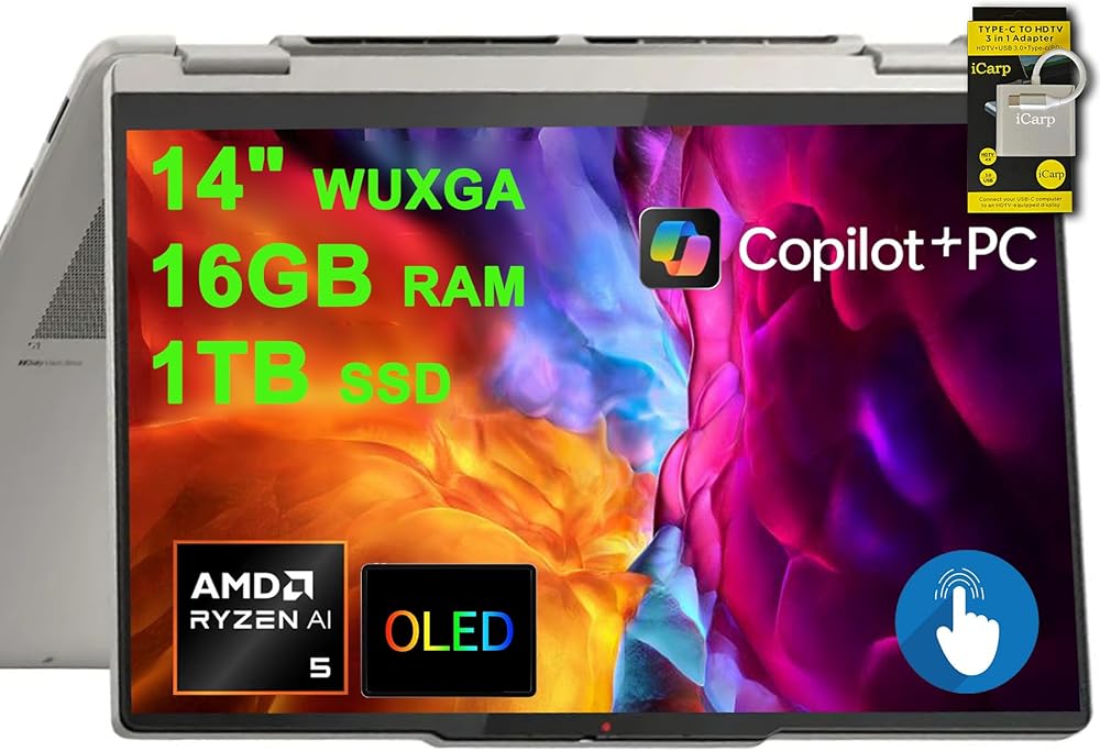 14" WUXGA (1920x1200) OLED Touchscreen (Glossy, Anti-fingerprint, 100% DCI-P3, 600nits HDR Peak)