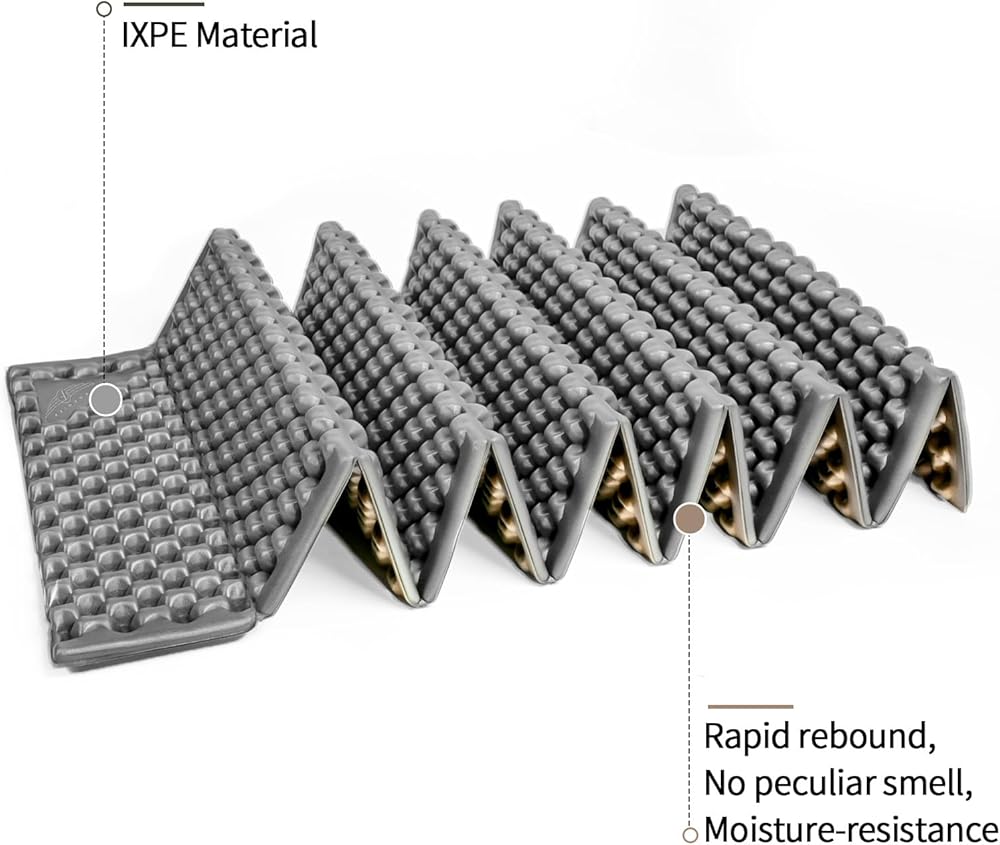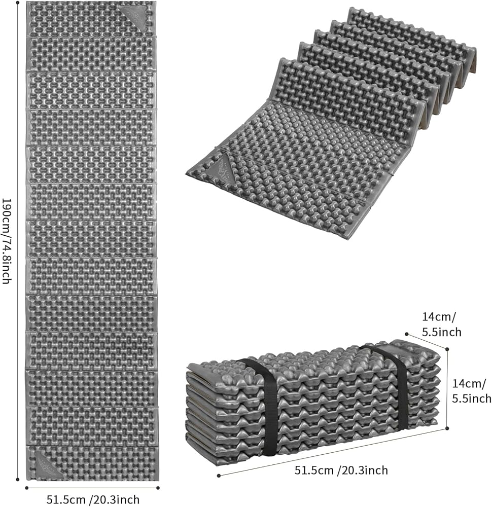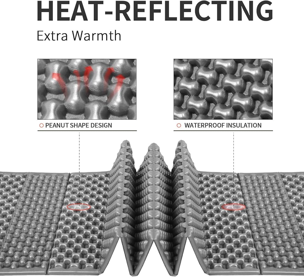 【Great Material】This portable sleeping pad is made of a lightweight IXPE foam that is comfortable to lay on. The closed cell foam sleeping pad ergonomically support all of your pressure points, giving you superior support and comfort all night long, no matter how you sleep.