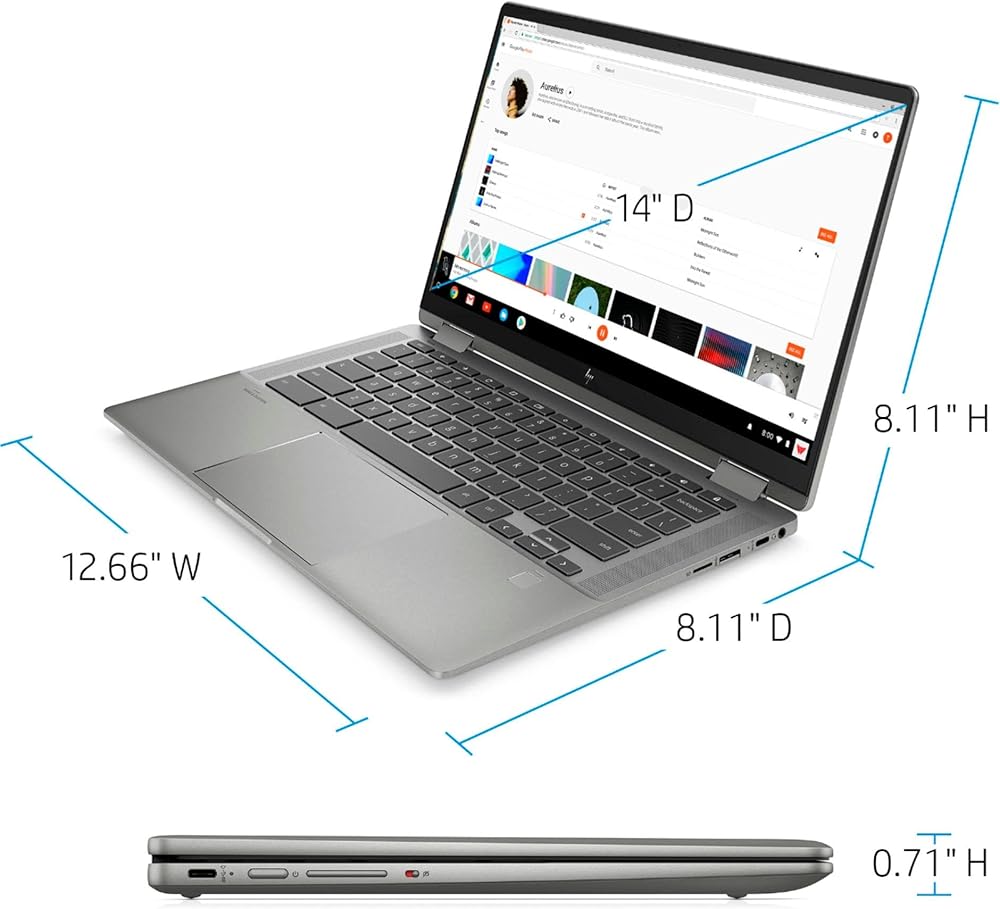 Chrome OS included. 2-cell Lithium-ion battery, 12.8" x 8.6" x 0.7", 3.64 lbs.