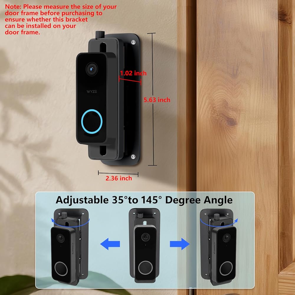 • 【Perfect Compatibility】Specially designed for the Wyze Video Doorbell V2 wired/ Pro, this wedge mount guarantees a snug and secure fit, so you can install with confidence and no guesswork. Bracket size: Width 3.15 × Height 5.59 inches. Note: Please measure your door frame before purchase to confirm fit. (All Doorbell not included.)