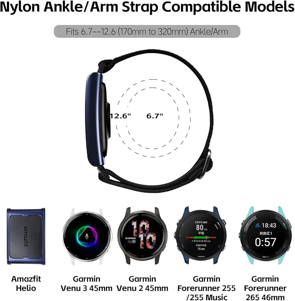 【22mm Watch Band Ankle/Arm】Compatible with Amazfit Helio Arm Band/Bip 6/Bip 5/GTR 4/GTR 3/GTR 3 Pro/GTR 2/2e/GTR 47mm, Compatible with Garmin Venu 3 45mm/Venu 2 45mm/Vivoactive 4 45mm, Forerunner 570 (47mm)/Forerunner 265 46mm/Forerunner 255 46mm/255 Music, Galaxy Watch 3 45mm/Galaxy Watch 46mm, Gear S3 Frontier/Classic. NOTE: Not suitable for the wrists. Please check your watch model before purchase.