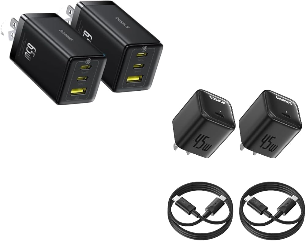 6 IN 1 Charge Baseus 2 Pack 65W USB C Charger Block+2 Pack 45W Charger +2 Pack USB C Cable