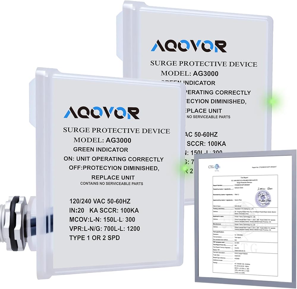 【Tested AG3000 HVAC Surge Protection Device】Strictly tested by UL (current pulse, ≤1ns voltage response, fire resistance) to ensure the product meets the highest industry safety standards and comes with a 5-year warranty. Provides professional-grade reliability and comprehensive protection for HVAC systems and electrical appliances against unexpected failures, safeguarding equipment value