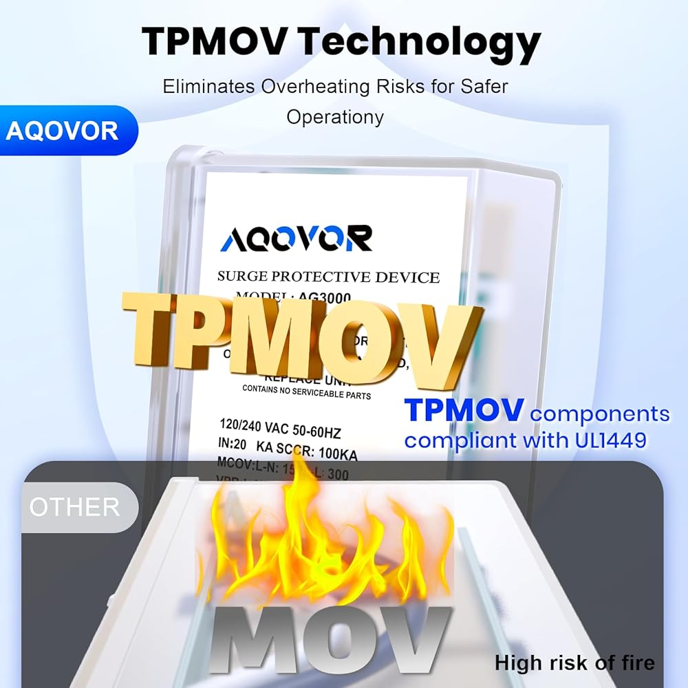 【TPMOV advanced technology protection】This AC surge protector uses TPMOV technology outperform standard MOVs by eliminating overheating/short-circuit risks with built-in thermal protection—ensuring safe, uninterrupted operation even during extreme surges. This advanced varistor design safeguards HVAC systems from destructive voltage spikes while maintaining long-term reliability