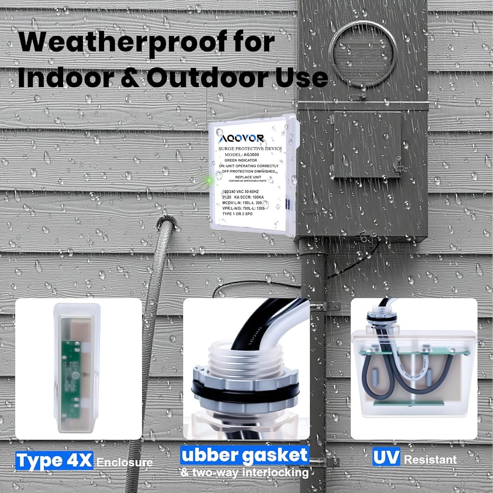 【Type 4X Waterproof & UV-Resistant Enclosure】Engineered for indoor and outdoor use, this HVAC Surge Protector rugged plastic housing withstands extreme weather, UV exposure, and moisture—ensuring long-term durability in harsh environments. Protect your equipment from environmental factors, extend product life, and maintain stable surge protection performance