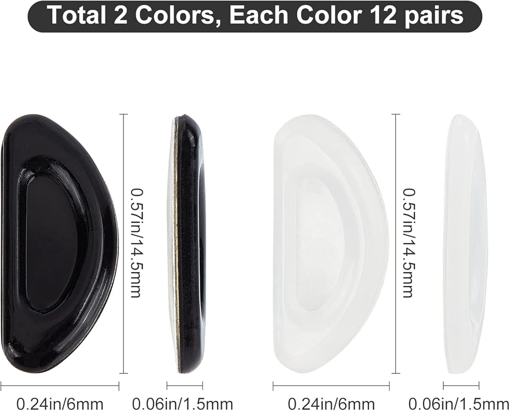 12pairs black + 12pairs transparent eyeglasses nose pads
