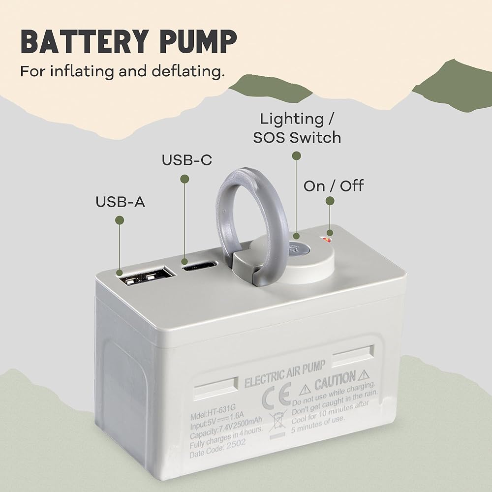 Cordless Self Inflating Sleeping Pad: Equipped with a built-in pump, easily set up the WanderMate as a camping mattress pad or cot pad. Whether you're solo or with someone else, spend less time setting up, and more time exploring.
