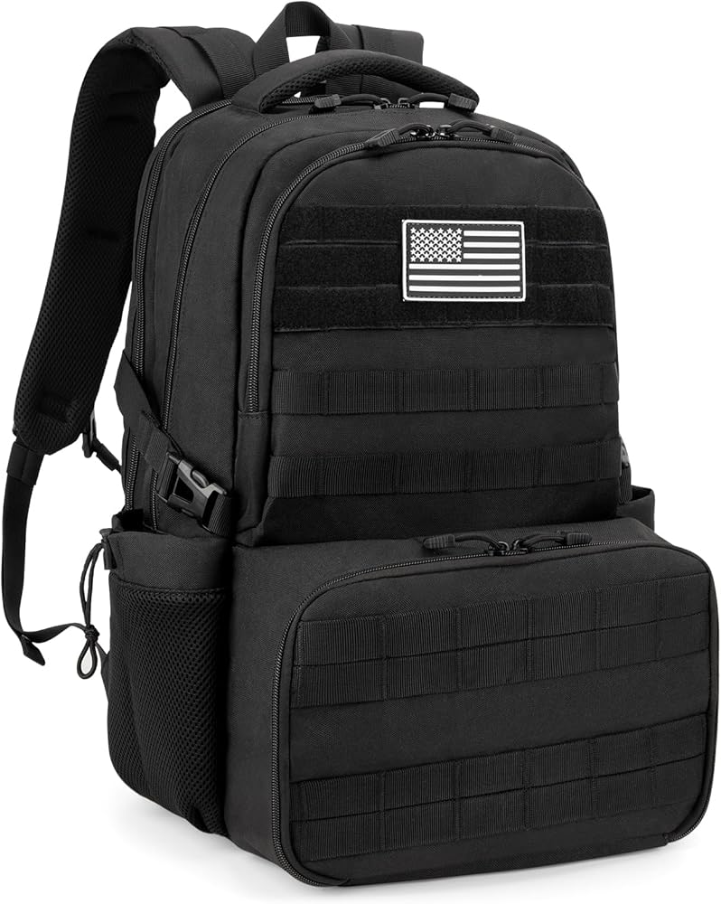 【Durable & Breathable Tactical Material】Made from water-resistant and wear-resistant camo tactical fabric style, this Tactical Laptop Backpack with Lunch Box is built for rugged use. The breathable mesh back panel keeps you cool and comfortable, even on long journeys. Ideal for work, travel, and outdoor adventures.