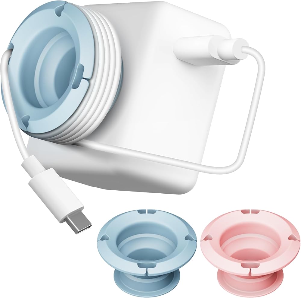 Nearockle Foldable Charger Organizer Charging Cable Winder, Compatible for USB C Charger Block, MacBook Charger, PC Charging Cords, Organization and Travel Essentials (Pink&Blue)
