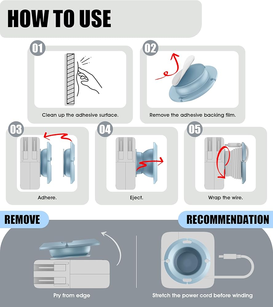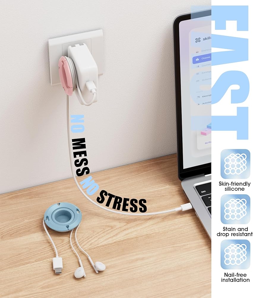 【Portable & Take up No Space】Made of soft silicone, it can be folded freely. It can be opened when winding and folded when charging. It can be pasted on the charger and does not take up space, making it easy to carry around