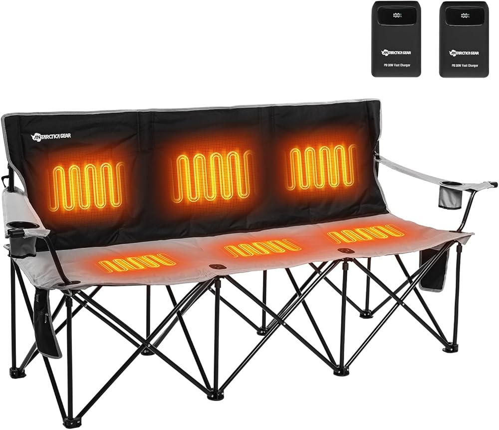Comfortable and Portable Camping Equipment: Experience ultimate comfort with the ANTARCTICA GEAR Double Heated Camping Chair. This spacious double sofa features soft padding, armrests, and a backrest, ensuring a warm and comfortable outdoor experience. Equipped with two 16000mAh/5V batteries, you can power the heating function anytime and anywhere.