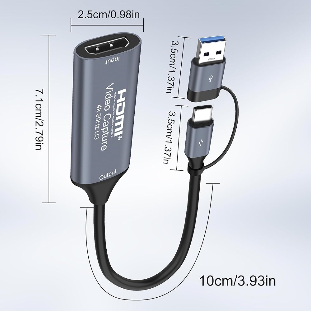 XMSJSIY Video Capture Card 4K HDMI to USB/USB-C Capture Card Full HD 1080p Audio Video Capture Card Streaming Device for Teaching Gaming Live Broadcasting Compatible with PS5 PS4 Xbox