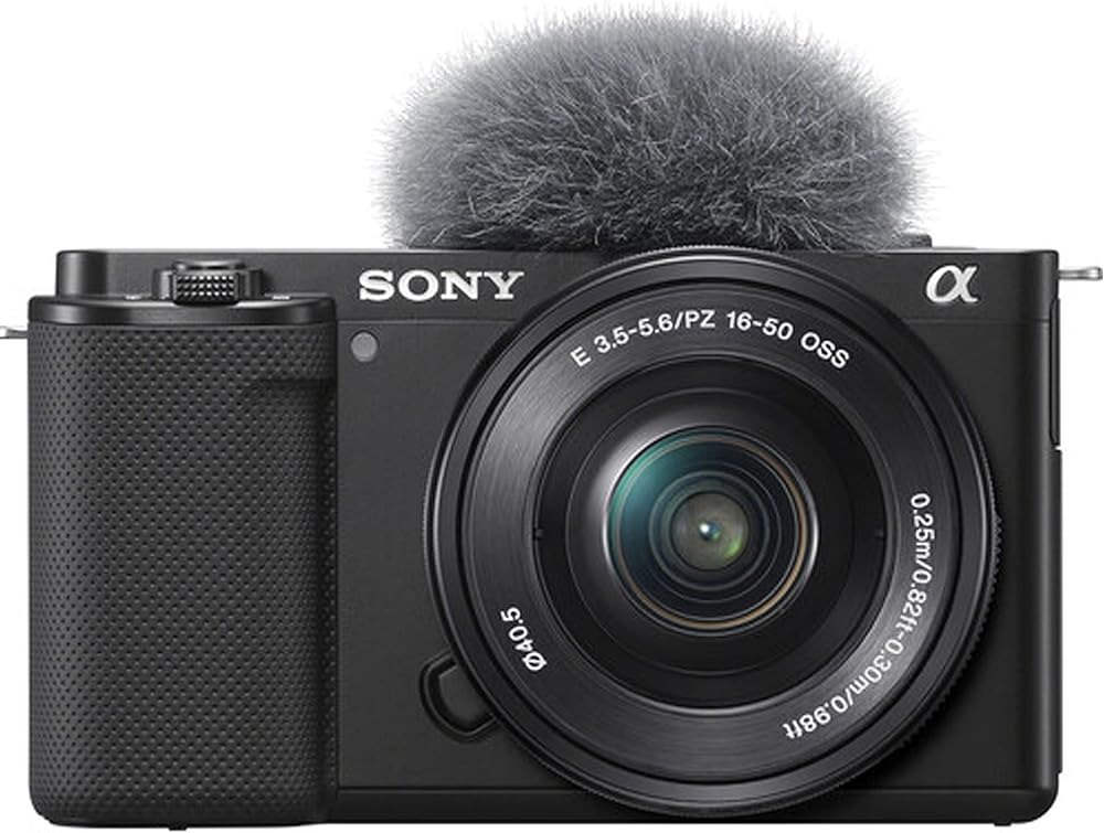 Sony ZV-E10 Mirrorless Camera with 16-50mm Lens -24.2MP APS-C Exmor CMOS Sensor, UHD 4K30p and Full HD 120p Video, 3.0'' Side Flip-Out Touchscreen LCD, 425-Point Fast Hybrid AF, Up to 11-fps Shooting, ISO 100-32000, Real-Time Eye AF and Tracking, Background Defocus & Face Priority AE, Directional 3-Capsule Mic and Windscreen, Headphone and Microphone Ports, E PZ 16-50mm f/3.5-5.6 OSS Lens