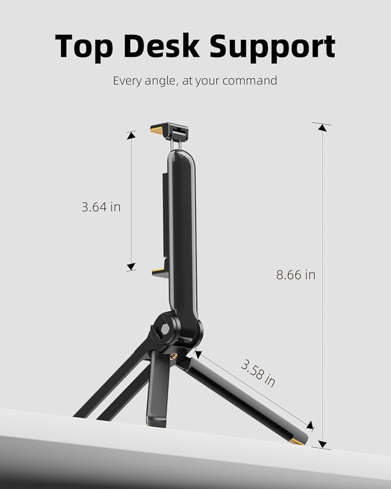 TODI Phone Tripod, Foldable Mini Desk Stand with 360° Phone Holder & Cold Shoe, Pocket Travel Tripod for iPhone, Portable Selfie Stick Handle Grip Compatible with iPhone/Android