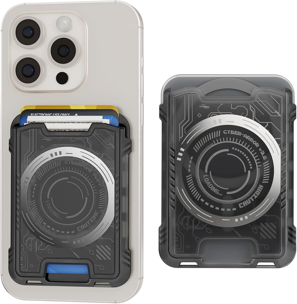 【Magnetic Expansion】: A magnetic attraction ring is added, allowing magnetic expansion accessories such as PopSockets, magnetic finger rings, phone holders, and other magnetic attachments. This cyberpunk-style MagSafe wallet is a must-have EDC item – Minimalism, functional, and futuristic
